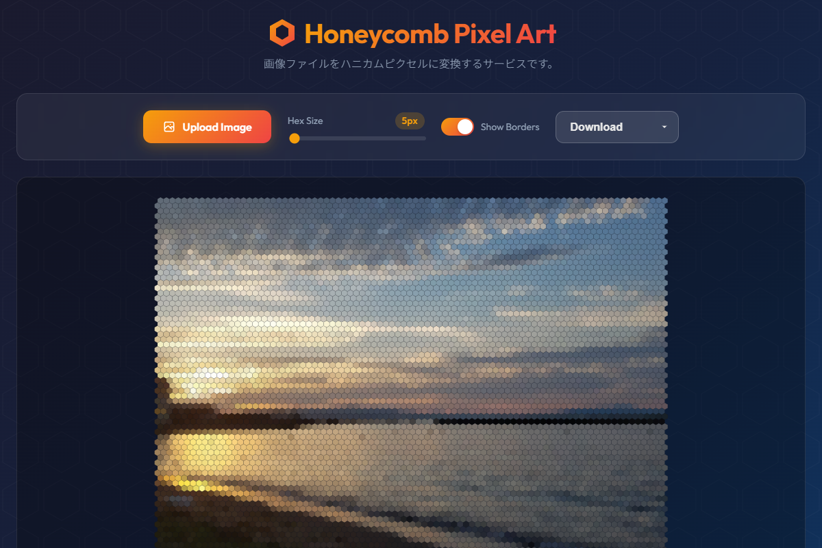 画像ファイルをハニカムピクセルに変換するサービスです。